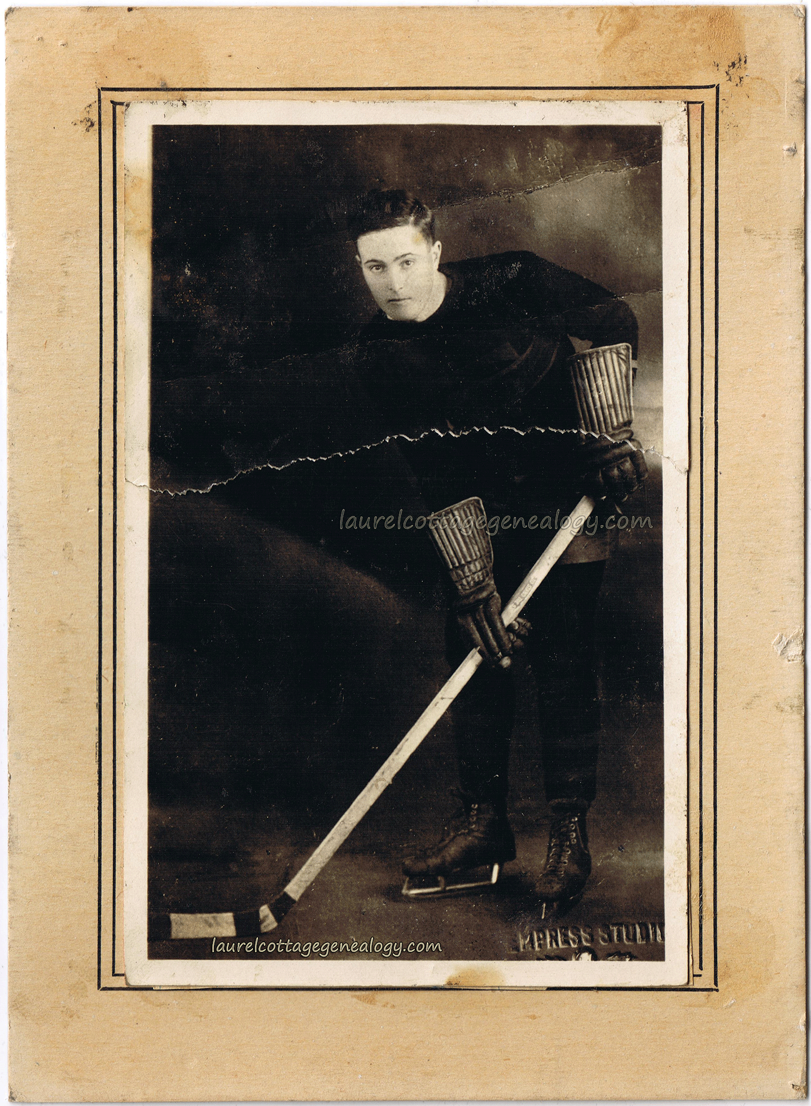 Studio portrait with cardboard frame, circa 1920s – 1930s. Price: $15.00 Old studio portrait of an unknown hockey player. At first glance, the name of the photography studio appearing at the bottom right seems to be “Press Studio” but upon…Read More…
