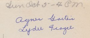 Two gorgeous girls: friends (or perhaps cousins) Agnes Gartin and Lydia Frazee, which is which we can’t say for sure. Per the writing on the back the photo was taken Sunday, October 5th at 4 p.m., year not given. From census records Agnes was born in Oklahoma about 1900, daughter of Mitch C. and Rosa D. Gartin. (Rosa’s maiden name is McMillan per Ancestry trees.) And Lydia “Lydee” was born in Kansas about 1901, daughter of Bert L. and Lena Frazee (Lena’s maiden name is Carter per Ancestry trees.) Most likely, the photo for this RPPC was taken in Morton, Sedgewick County, Kansas, around 1915 or so.